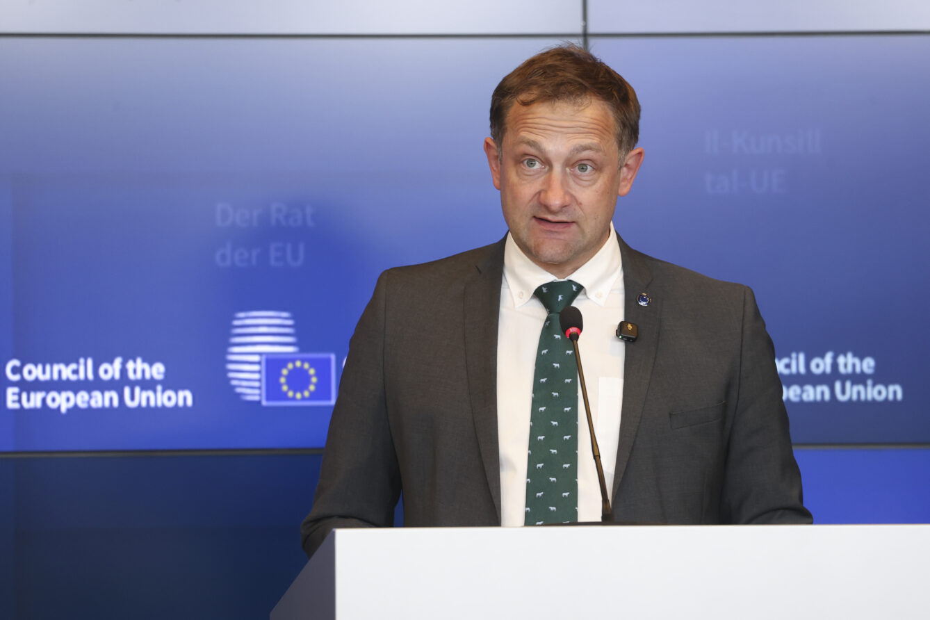 European Union – Christophe Hansen počas tlačovej konerencie (27.4.2026).