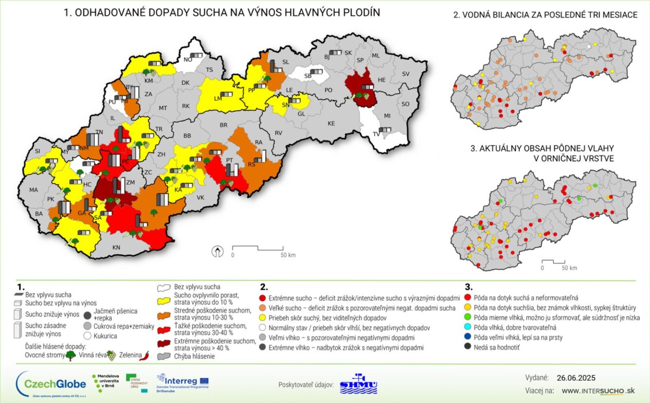 „Zrýchľujú a skracujú sa vývojové fázy, zemiaky vädnú. Nedostatkom zrážok najviac trpia krmoviny. Problémom je aj vyšší výskyt škodcov, hlavne vošiek. Problémom začína byť aj pokles podzemnej vody. Na Podunajskej nížine nám reportéri hlásia problémy s porastmi obilnín, ktoré sú zahorené a usychajú pred dozretím,“ uviedli meteorológovia.