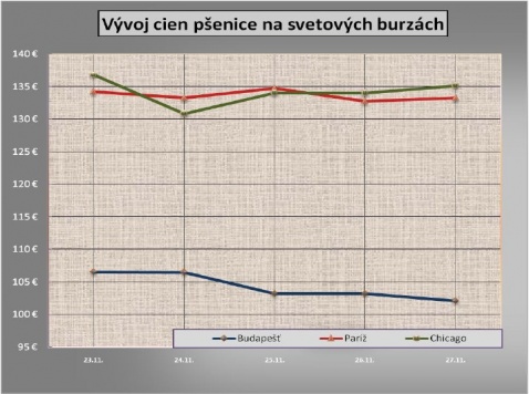 Ceny pšenice sa v 48. týždni na svetových burzách v Chicagu a v Paríži vyvíjali podobne. Začiatok týždňa sa niesol v znamení stabilizácie. Väčší pokles k 24. novembru bol spôsobený cenou ropy a neistotou ohľadom splácania dlhu Dubaja. Ceny sa ale ku koncu týždňa stabilizovali. Bolo to z dôvodu zvýšenia dopytu po americkej pšenici zo strany iných krajín (napr. Japonsko a Irak), ale aj v dôsledku oslabujúceho doláru, ktorý v strede tohto týždňa klesol na niekoľkomesačné minimum a presiahol úroveň 1,50 dolárov za euro.