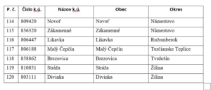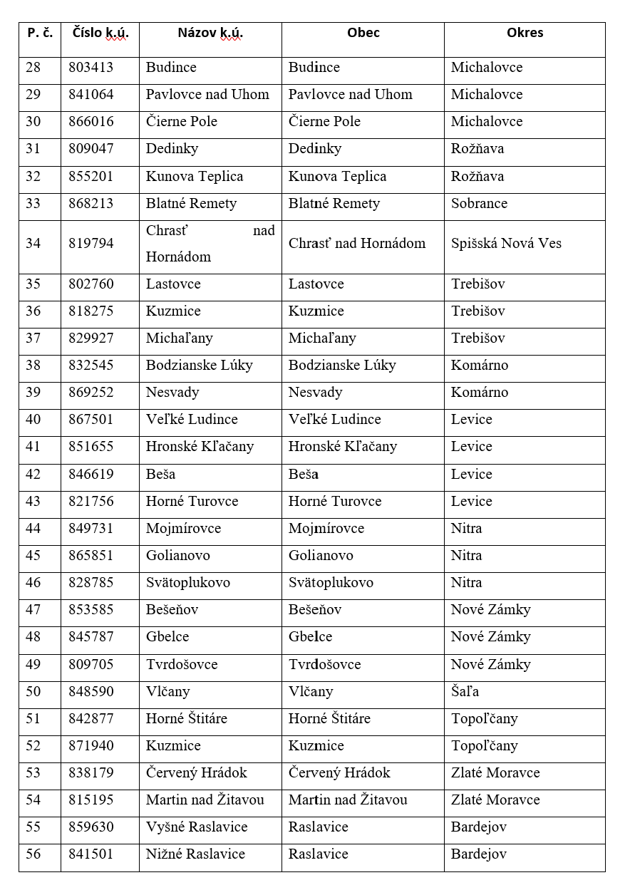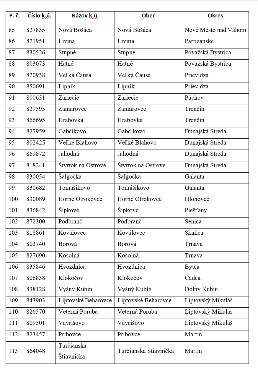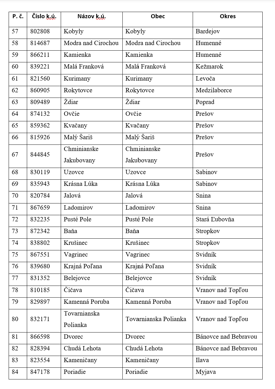 Úloha vypracovania zoznamu katastrálnych území vyplýva z uznesenia vlády SR z 21. augusta 2019. V schválenom materiáli bolo určené, že zoznam katastrálnych území pripraví podľa stanovených kritérií medzirezortná komisia.