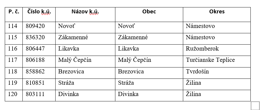 Zoznam 120 katastrálnych území pre začatie pozemkových úprav na rok 2026